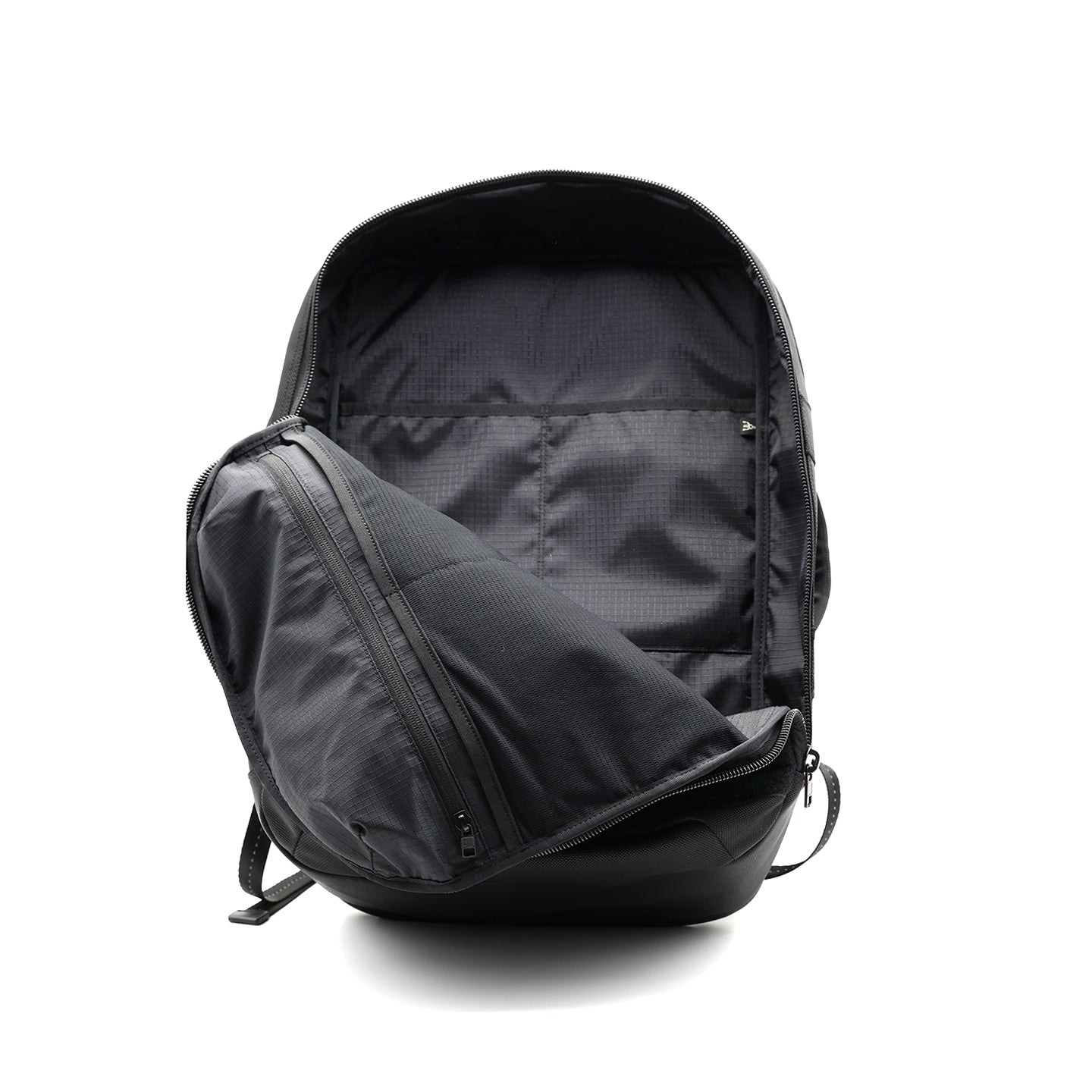 →ベタポケット、ゴムメッシュポケット、ファスナーポケットと用途に合わせて使える多くのポケットがついており、収納力は抜群です。